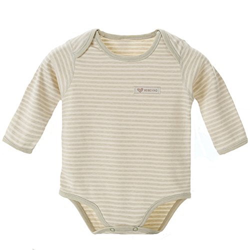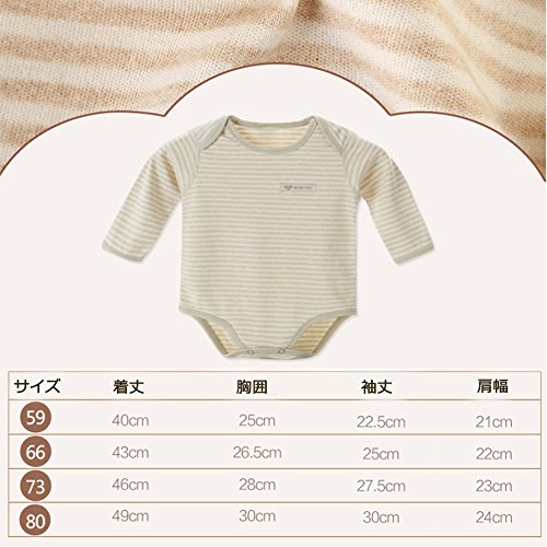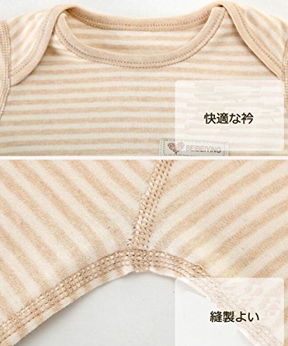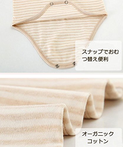 エルフ ベビー(Fairy Baby)オーガニックコットンベビー夏ボディスーツ ロンパース 肌着 長袖 ストライプ 80cm グリーン