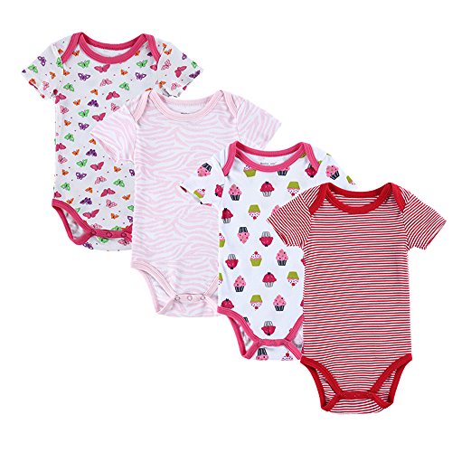 エルフ ベビー(Fairy Baby)夏ベビーボディスーツ 肌着 半袖 4枚セット 出産祝い(サイズ:4-6M) セット12