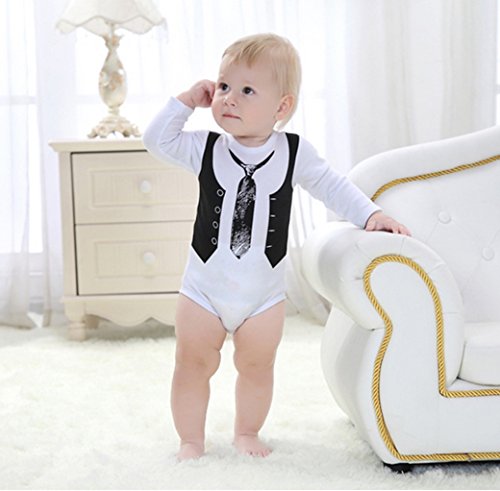 エルフ ベビー(Fairy Baby)ベビー長袖フォーマル風ボディスーツ 肌着 長袖 男の子 ネクタイ風(サイズ:4-6M)
