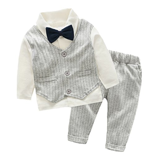 エルフ ベビー(Fairy Baby)ベビースーツ 男の子 上下セット 長袖フォーマル 結婚式服 重ね着風(サイズ:80、グレー)