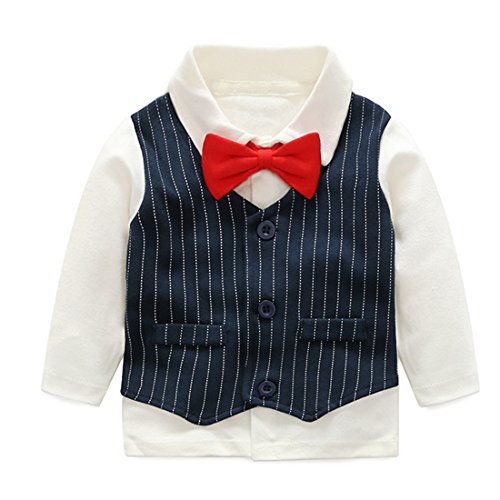 エルフ ベビー(Fairy Baby)ベビースーツ 男の子 上下セット 長袖フォーマル 結婚式服 重ね着風(サイズ:100、紺色)
