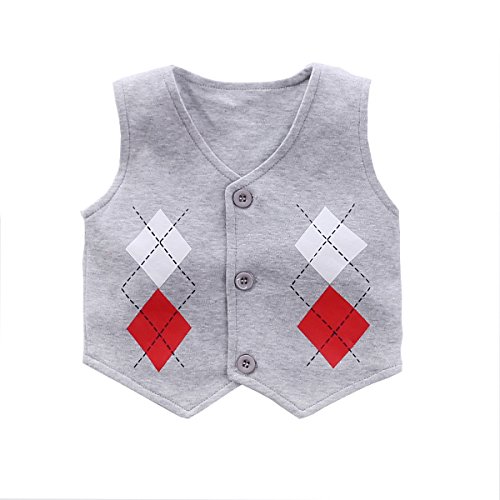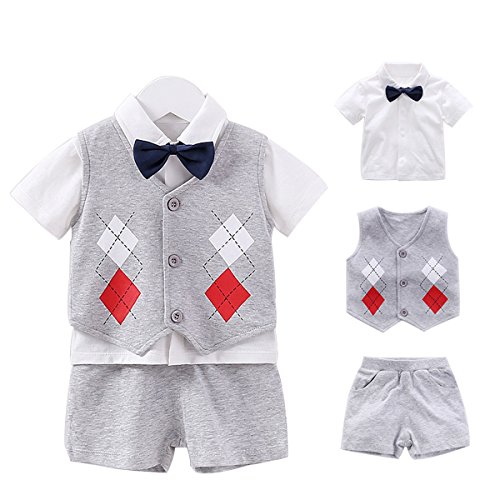 エルフ ベビー(Fairy Baby) ベビーフォーマル 男の子スーツ半袖 ベスト付き 発表会 七五三 結婚式 出産祝い 3点セット size 80 (ひし柄)