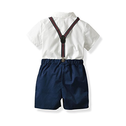 エルフ ベビー(Fairy Baby) 子供フォーマルスーツ 男の子 半袖シャツ 半ズボン サスペンダー 蝶ネクタイ4点セット 結婚式 size 110 (ホワイト+紺色)