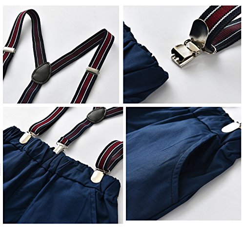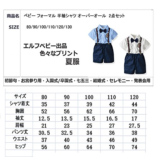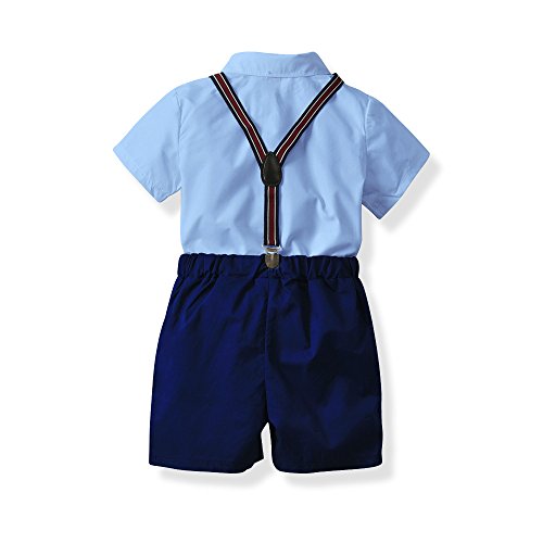 エルフ ベビー(Fairy Baby) 子供フォーマルスーツ 男の子 半袖シャツ 半ズボン サスペンダー 蝶ネクタイ4点セット 結婚式 size 100 (ブルー+紺色)