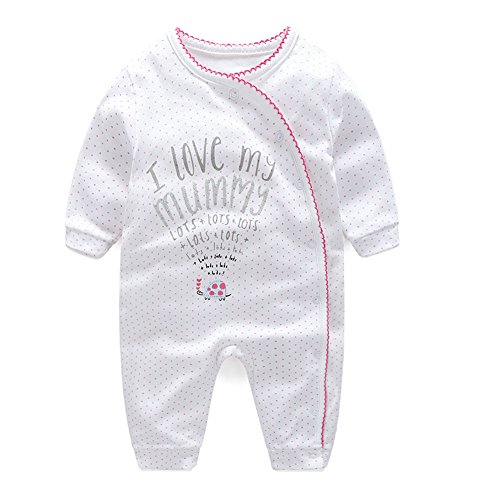 エルフ ベビー(Fairy Baby)新生児服 カバーオールロンパース 前開き 長袖 四季兼用 出産祝い 可愛いピンク水玉柄 12M
