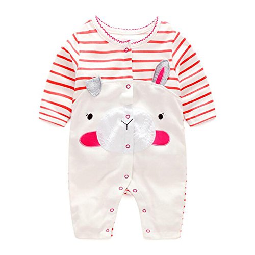 エルフ ベビー(Fairy Baby)新生児服 カバーオールロンパース 前開き 長袖 春秋用 可愛いうさぎ柄 ストライプ 3M