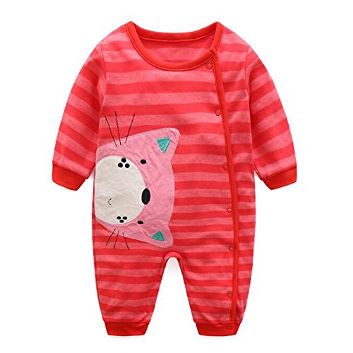 エルフ ベビー(Fairy Baby)新生児服 カバーオールロンパース 前開き 長袖 春秋用 可愛い猫柄 レッド 3M