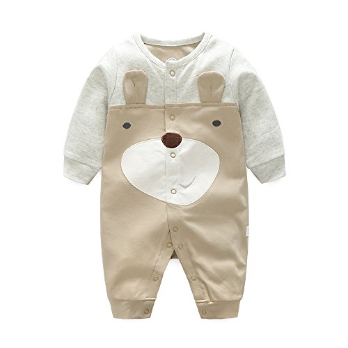 エルフ ベビー(Fairy Baby) クマ柄 新生児服 カバーオールロンパース 前開き 長袖 春秋用 出産祝い 6M