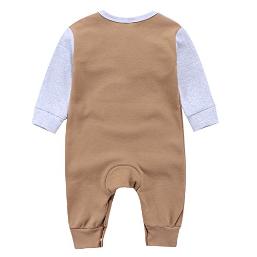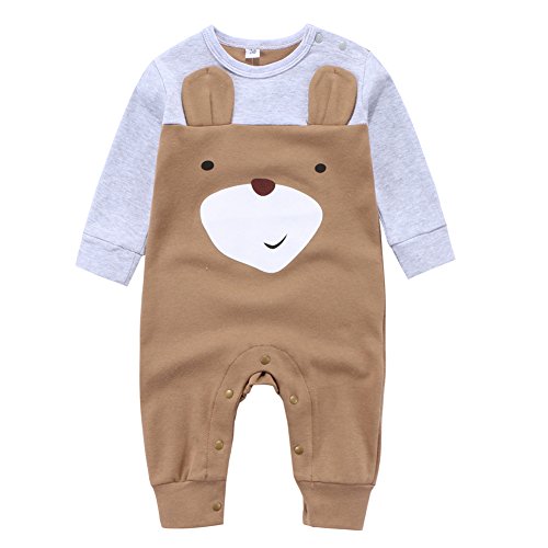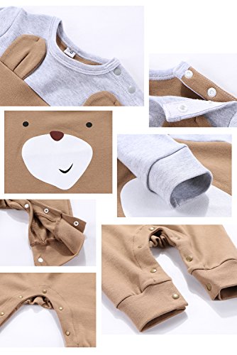 エルフ ベビー(Fairy Baby)新生児服 カバーオールロンパース 肩開き 長袖 春秋用 可愛いクマ模様 茶色 6M