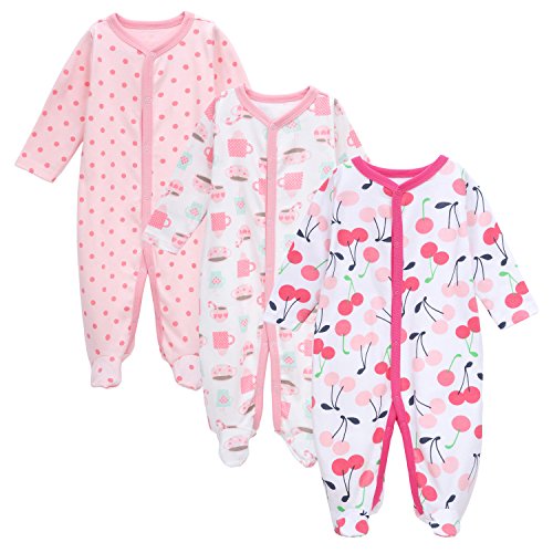 エルフ ベビー(Fairy Baby)新生児服 足つきカバーオールロンパース 長袖 3枚セット 出産祝い 女の子 0-3M セット2