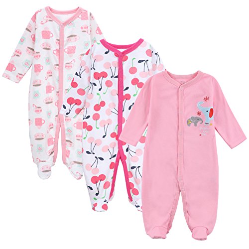 エルフ ベビー(Fairy Baby)新生児服 足つきカバーオールロンパース 長袖 3枚セット 出産祝い 女の子 4-6M セット3