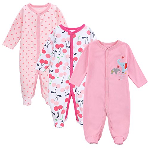 エルフ ベビー(Fairy Baby)新生児服 足つきカバーオールロンパース 長袖 3枚セット 出産祝い 女の子 7-9M セット1