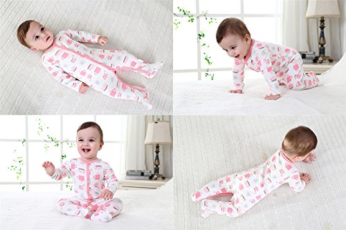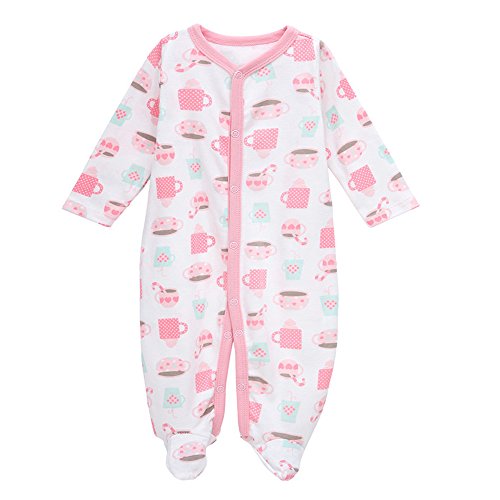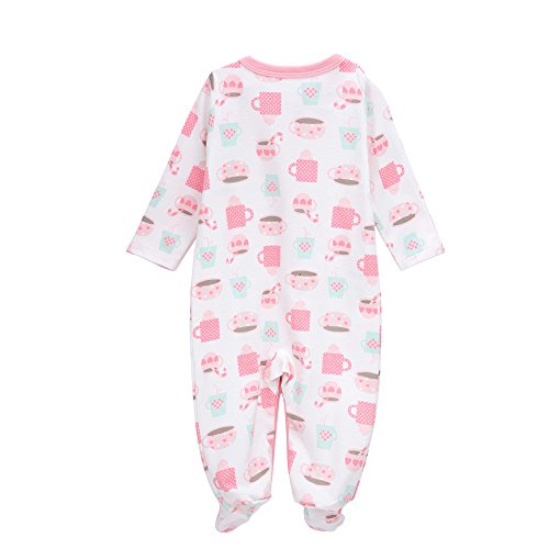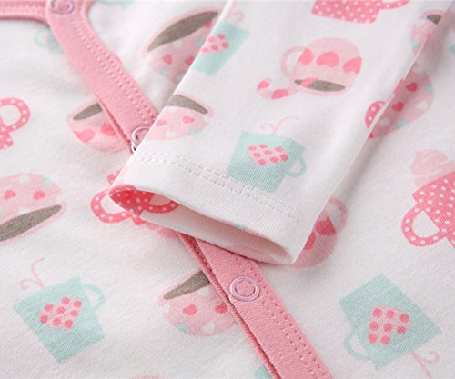 エルフ ベビー(Fairy Baby)新生児服 足つきロンパース ベビー服 つなぎ カバーオール 長袖 出産祝い (4-6M, 杯柄 ピンク)