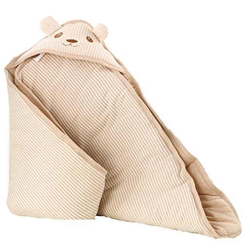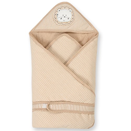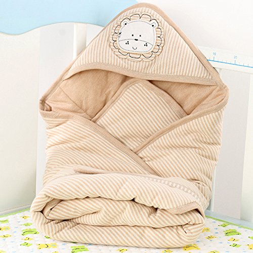 エルフ ベビー(Fairy Baby)オーガニックコットン ベビーおくるみフード付き 新生児用布団 ブランケット 冬厚い 可愛い刺繍 獅子 80*80CM