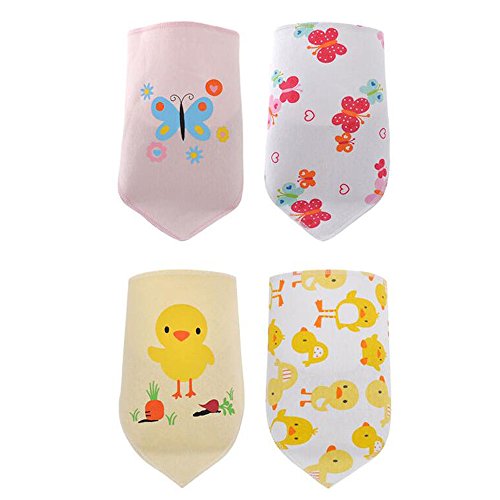 エルフ ベビー (Fairy Baby) 柔らかい 赤ちゃん用 よだれかけ コットン バンダナスタイル 三角ビブ 4枚組 蝶とにわとり