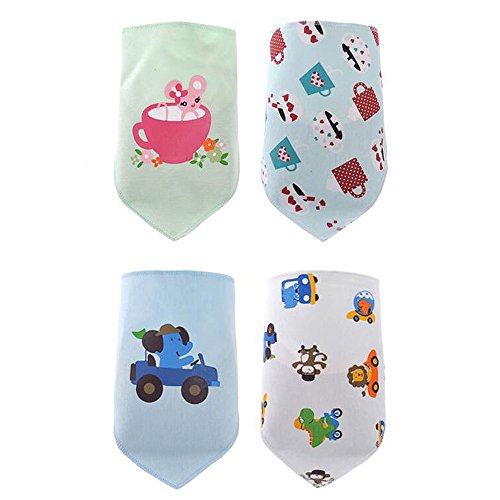 エルフ ベビー (Fairy Baby) 柔らかい 赤ちゃん用 よだれかけ コットン バンダナスタイル 三角ビブ 4枚組 車とコップ