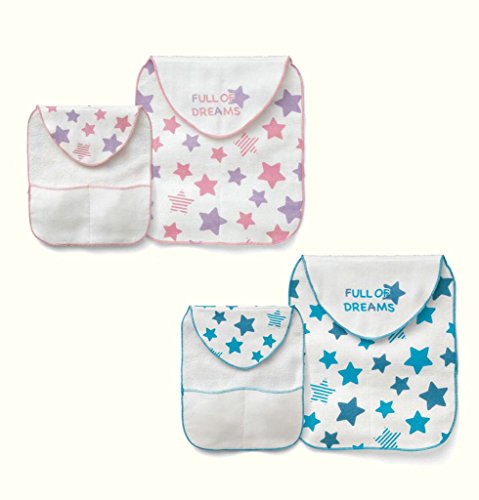 エルフ ベビー (Fairy Baby) ベビー用 綿100% 4層ガーゼ 可愛い 赤ちゃん 汗取りパッド 2色セット(21*24.5cm,星)