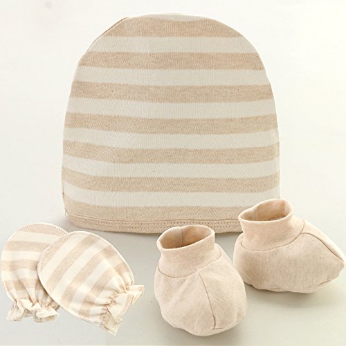 エルフ ベビー(Fairy Baby)オーガニックコットン 新生児用品 出産祝い ギフトセット ストライプ(手袋1組、ソックス1足、帽子1枚)