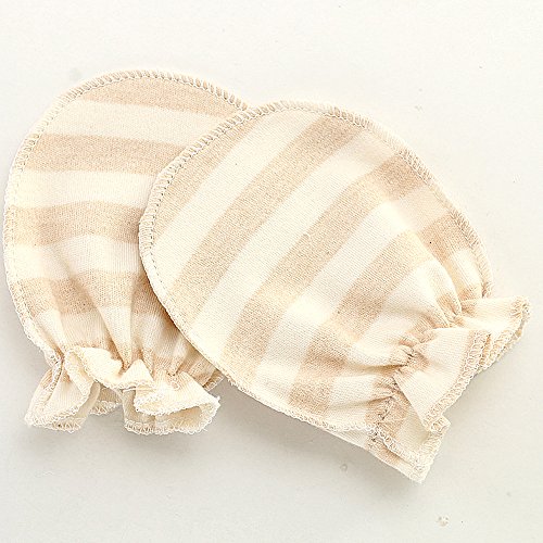 赤ちゃんのお顔を引っかき傷やひえから守る、手にやさしいミトンタイプ、生成り柄。