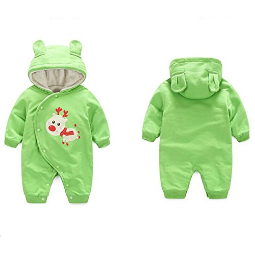 エルフ ベビー(Fairy Baby)赤ちゃん着ぐるみパジャマ カバーオールロンパース フード付き 長袖防寒 出産祝い 73cm グリーン おおじか