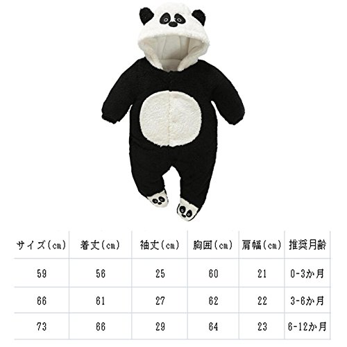 エルフ ベビー(Fairy Baby)ベビーカバーオール冬 新生児ロンパース着ぐるみ 前開きフード付き 長袖 パンダ 59cm