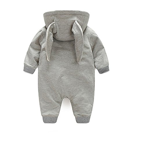 エルフ ベビー(Fairy Baby)赤ちゃん着ぐるみ パジャマ カバーオール ロンパース フード付き うさぎ耳 長袖防寒 出産祝い 66cm グレー