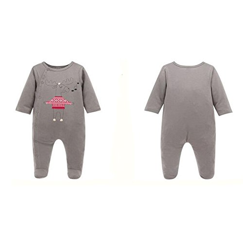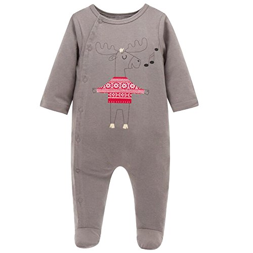 エルフ ベビー(Fairy Baby)ベビー服 カバーオールロンパース 足つき 長袖前開き 鹿模様 茶褐色 9-12M