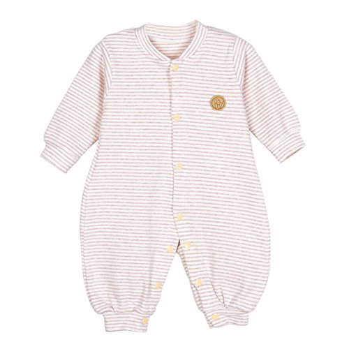 エルフ ベビー(Fairy Baby)コットンベビー肌着 パジャマ 長袖秋冬用 柔らか ストライプ 前開き 6M