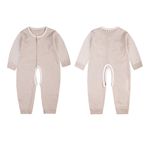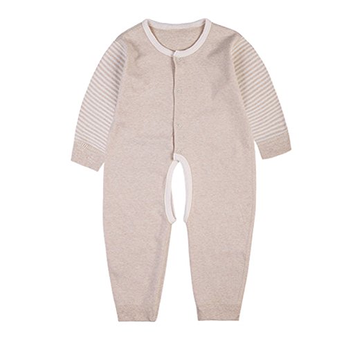 エルフ ベビー(Fairy Baby)オーガニックコットン 新生児ロンパース パジャマ 長袖 59cm カーキ ストライプ