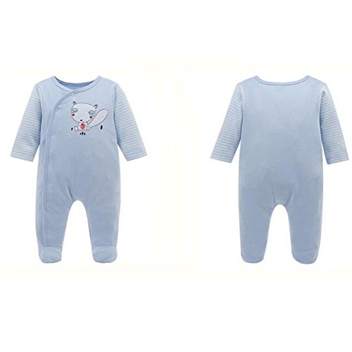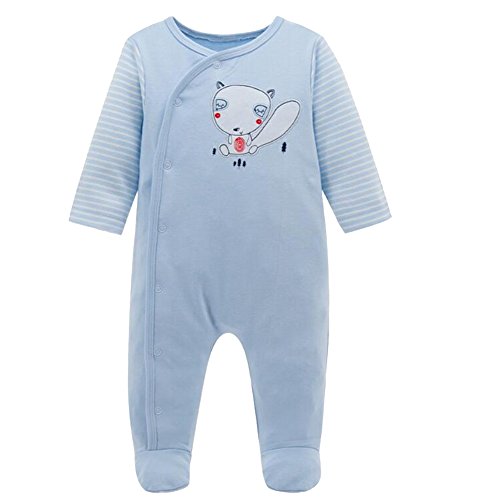 エルフ ベビー(Fairy Baby)ベビーカバーオールロンパース 足つき 長袖前開き 出産祝い クマ ブルー 9-12M