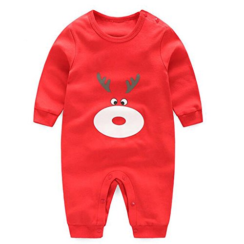 エルフ ベビー(Fairy Baby)新生児パジャマ ベビーカバーオールロンパース 四季兼用 長袖 出産祝い59cm レッド おおじか