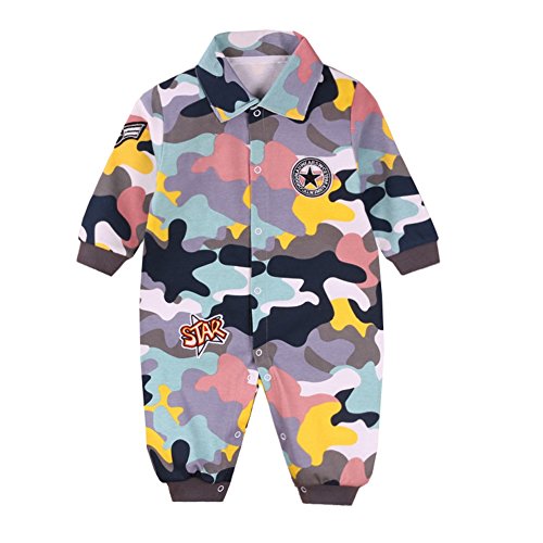 エルフ ベビー(Fairy Baby)ベビーカバーオールロンパース 長袖 前開き 春秋 出産祝い 迷彩柄 6M