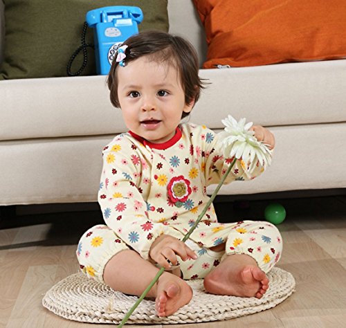 エルフ ベビー(Fairy Baby)新生児服 カバーオールロンパース 前開き 長袖 四季兼用 可愛い花柄 イエロー 73cm (90)