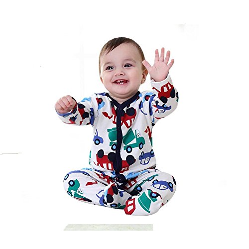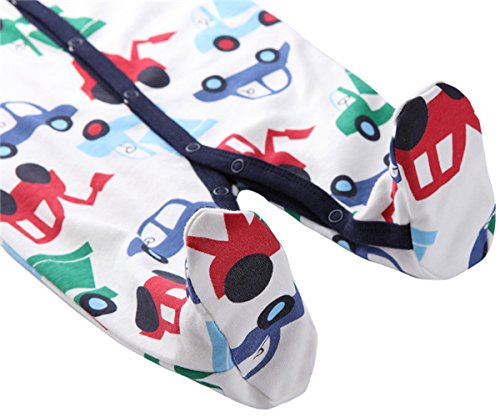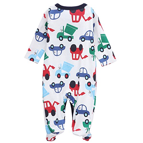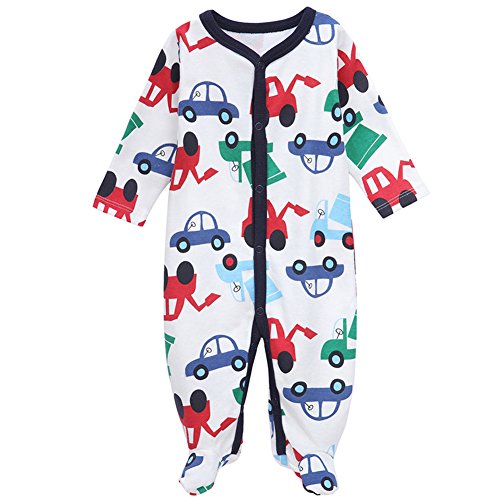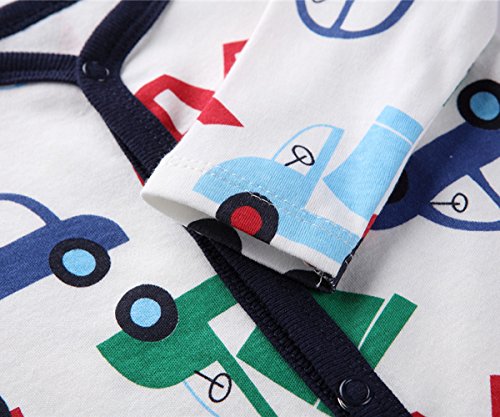 エルフ ベビー(Fairy Baby)足つきロンパース ベビー服 つなぎ カバーオール 長袖 0-3M 車柄 紺色の縁