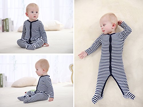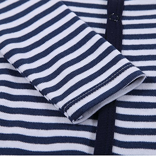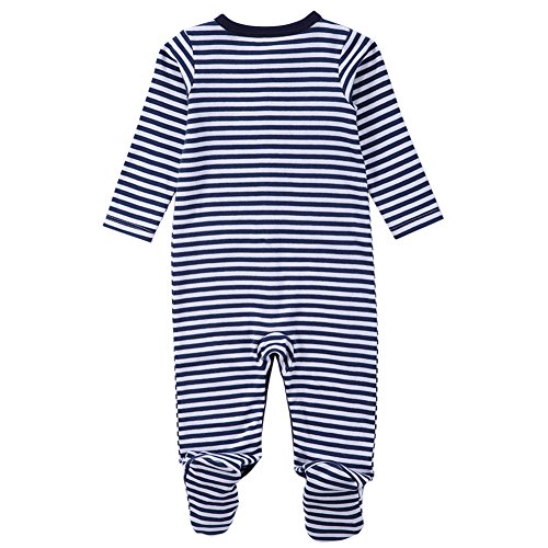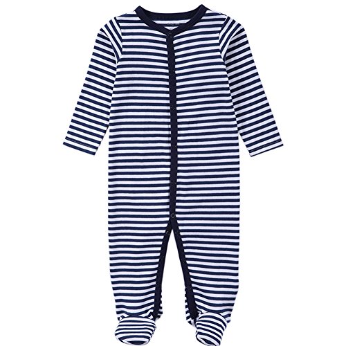 エルフ ベビー(Fairy Baby)足つきロンパース ベビー服 つなぎ カバーオール 長袖 0-3M しま柄 紺色