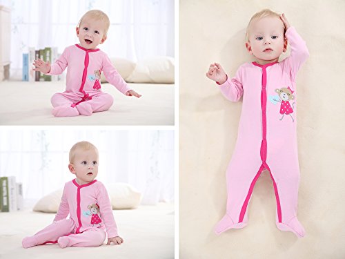 エルフ ベビー(Fairy Baby)足つきロンパース ベビー服 つなぎ カバーオール 長袖 0-3M 猿柄 ピンク