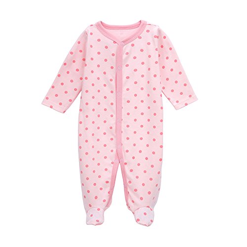 エルフ ベビー(Fairy Baby)足つきロンパース ベビー服 つなぎ カバーオール 長袖 7-9M 水玉プリント ピンク