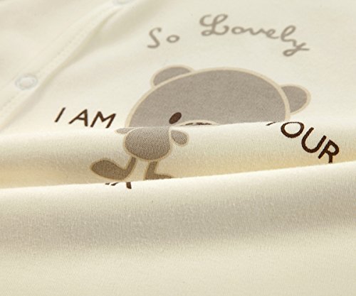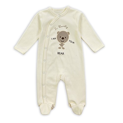 エルフ ベビー(Fairy Baby)足つきロンパース ベビー服 つなぎ カバーオール 長袖 10-12M クマ柄 ベージュ