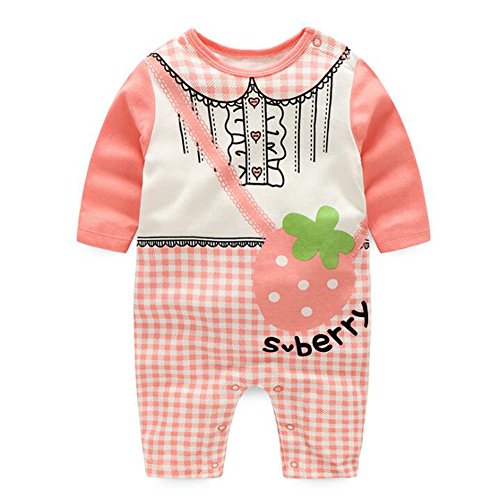 エルフ ベビー(Fairy Baby)新生児服 春秋用カバーオールロンパース 長袖 可愛いプリント 3M イチゴ柄