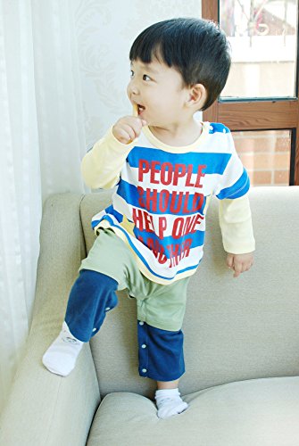 エルフ ベビー(Fairy Baby)ベビー服 男の子カバーオールロンパース 長袖 春秋用 ブルー ストライプ(サイズ:90)