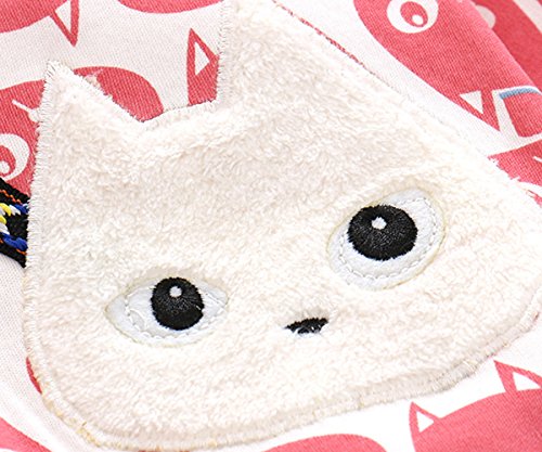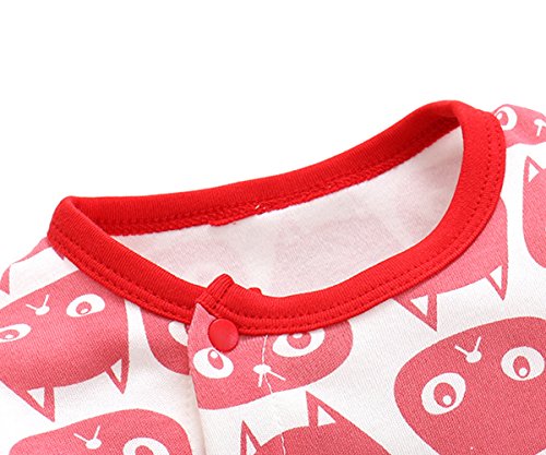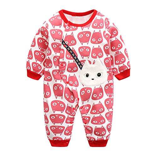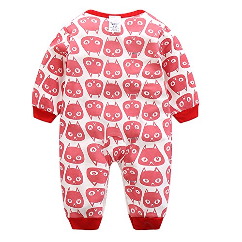 エルフ ベビー(Fairy Baby)新生児服 カバーオールロンパース 前開き 長袖 四季兼用 可愛い猫柄 レッド 70cm