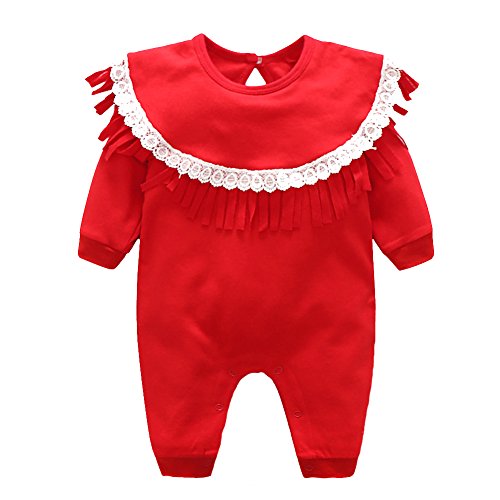 エルフ ベビー(Fairy Baby)ベビー服 長袖 女の子ロンパース カバーオール 四季兼用 可愛いふさ飾り レッド 80cm