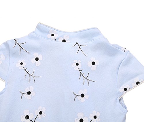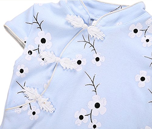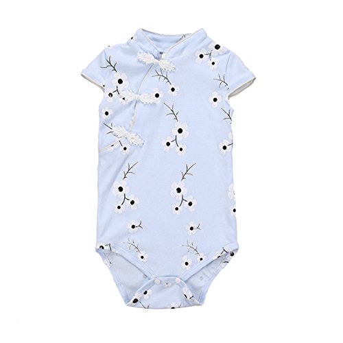 エルフ ベビー(Fairy Baby)夏用ボディスーツ チャイナ風 チーパオ 女の子 花柄 80cm ブルー