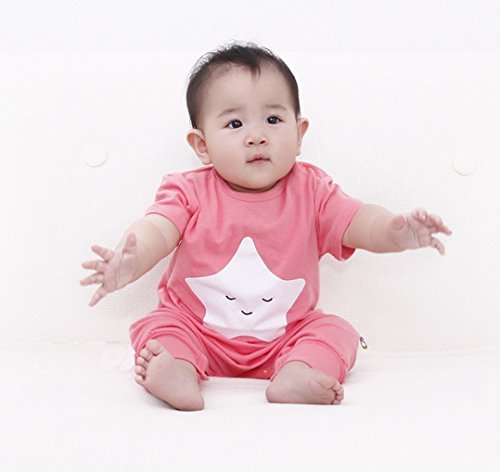 エルフ ベビー(Fairy Baby)ベビー服 ロンパースカバーオール 半袖 夏 可愛い星柄 ピンク サイズ:90
