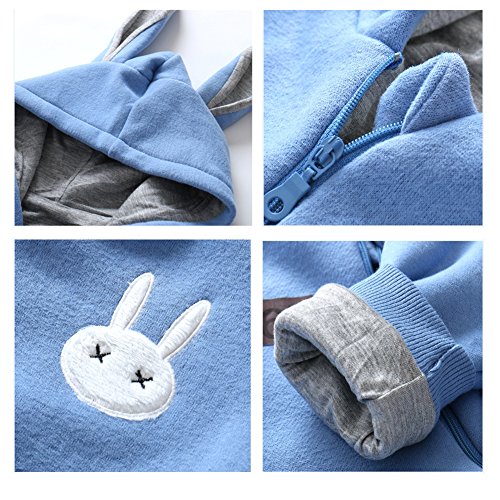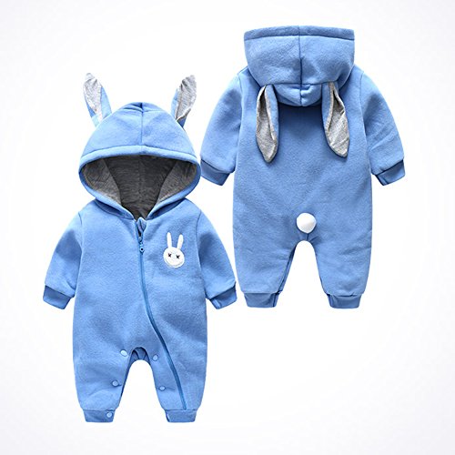 エルフ ベビー(Fairy Baby)赤ちゃん着ぐるみ カバーオール ロンパース フード付き うさぎ耳 長袖防寒着 73cm ブルー