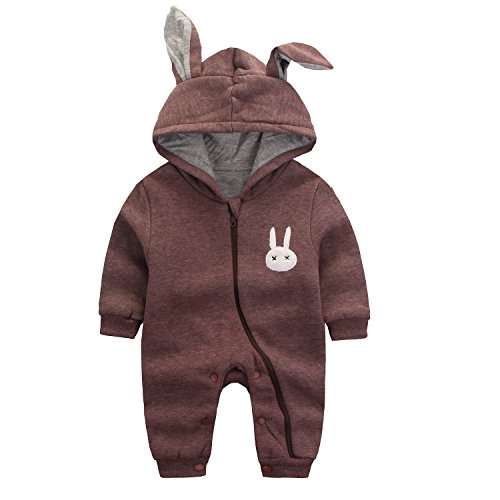 エルフ ベビー(Fairy Baby)赤ちゃん着ぐるみ カバーオール ロンパース フード付き うさぎ耳 長袖防寒着 80cm 茶褐色