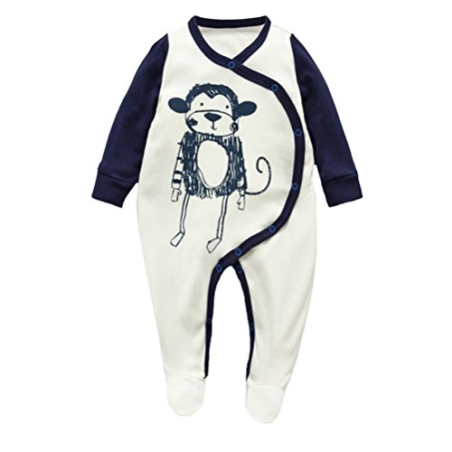 エルフ ベビー(Fairy Baby)ロンパース ベビーつなぎ 足つきカバーオール 長袖 前開き 59cm サル