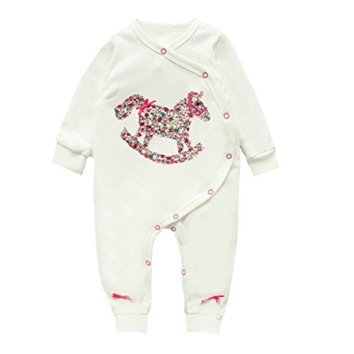 エルフ ベビー(Fairy Baby)ロンパース ベビー服つなぎ カバーオール 長袖 前開き 80cm 木馬