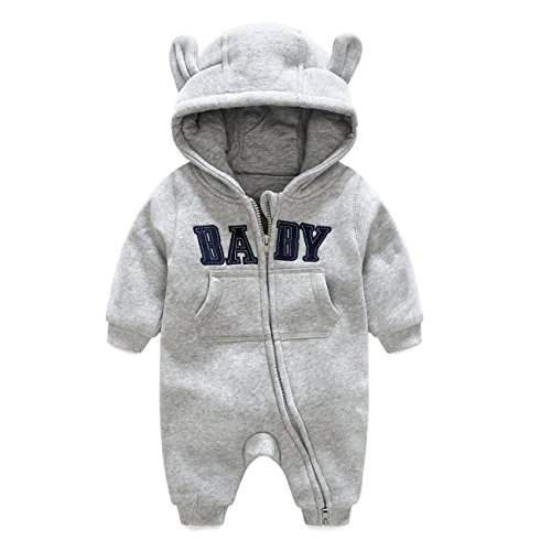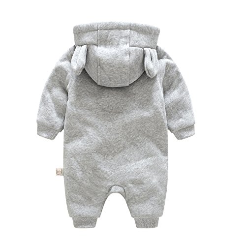 エルフ ベビー(Fairy Baby)ベビー服 ロンパース フード付き クマ耳 長袖 秋冬防寒着 9M グレー