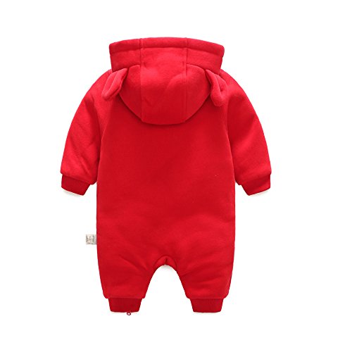 エルフ ベビー(Fairy Baby)ベビー服 ロンパース フード付き クマ耳 長袖 秋冬防寒着 3M レッド